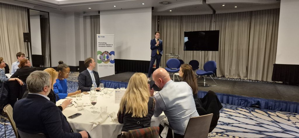 Organised by the European Christian Political Party (ECPP) and the Cornerstone Network of Young Professionals, the annual Cornerstone Dinner brought together professionals working for or with the European Institutions, as well as those aspiring to contribute to society through their Christian faith. The event focused on reconciliation in today’s polarised society and aimed to connect and encourage young professionals who integrate their Christian beliefs into their work and daily lives, while also familiarising participants with the values and vision of ECPP.